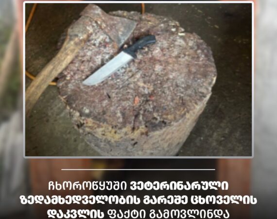 სურსათის ეროვნული სააგენტოს სამეგრელო-ზემო სვანეთის დეპარტამენტის ინსპექტორებმა, შსს-ს სამეგრელო ზემო-სვანეთის პოლიციის დეპარტამენტის ჩხოროწყუს სამმართველოსა და გარემოს დაცვითი ზედამხედველობის დეპარტამენტის თანამშრომლებთან ერთობლივი ღონისძიების ფარგლებში, ჩხოროწყუს მუნიციპალიტეტში ვეტერინარული ზედამხედველობის გარეშე ცხოველის დაკვლის ფაქტი გამოავლინეს. "არაგეგმური შემოწმების შედეგად დადგინდა, რომ ფიზიკური პირი კ. წ. (მის: ჩხოროწყუ, სოფ. ლეწურწუმე) სავალდებულო აღიარებისა და ბიზნესოპერატორად რეგისტრაციის...